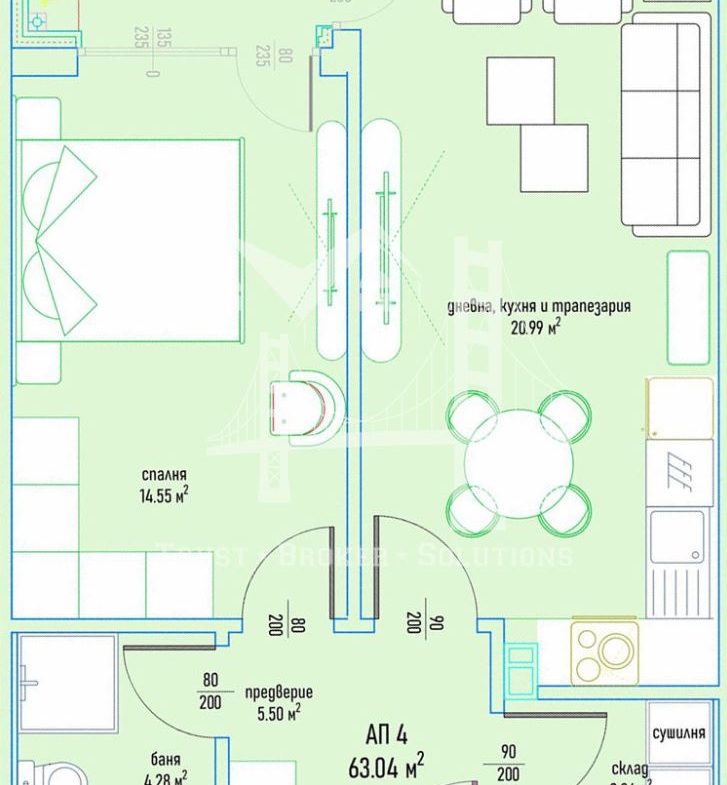 Малинова долина, тристаен апартамент завършен до ключ. Ново строителство