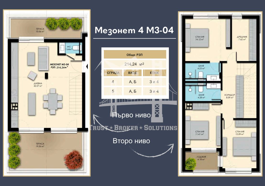 Агенция „Trust Broker Solutions” предлага на Вашето внимание изключително просторен и функционален мезонет, разположен в с. Бистрица, София – перфектен избор за семейства, които търсят комфорт на две нива, качество на ново строителство и спокойствие близо до природата. Жилището впечатлява с балансирано разпределение и модерна сграда с асансьор, осигуряваща удобен достъп. Идеологията на комплекса, разположен в живописния район на Бистрица в близост до Витоша планина, е да осигури паркова среда с фонтани, зона за релакс, спортна площадка и изцяло подземно паркиране. Мезонетите създават усещане за къща.