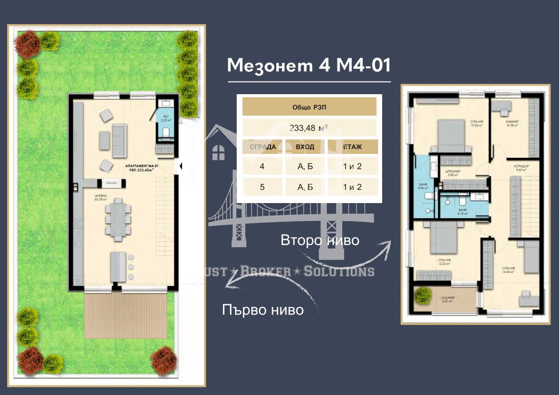 Агенция „Trust Broker Solutions” предлага на Вашето внимание изключително просторен и функционален мезонет, разположен в с. Бистрица, София – перфектен избор за семейства, които търсят комфорт на две нива, качество на ново строителство и спокойствие близо до природата. Жилището впечатлява с балансирано разпределение и модерна сграда с асансьор, осигуряваща удобен достъп. Идеологията на комплекса, разположен в живописния район на Бистрица в близост до Витоша планина, е да осигури паркова среда с фонтани, зона за релакс, спортна площадка и изцяло подземно паркиране. Мезонетите създават усещане за къща.