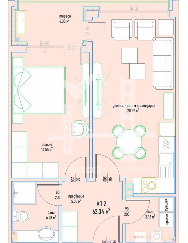 Агенция „Trust Broker Solutions” предлага на Вашето внимание двустаен апартамент в кв. Малинова долина. До бул. Климент Охридски.