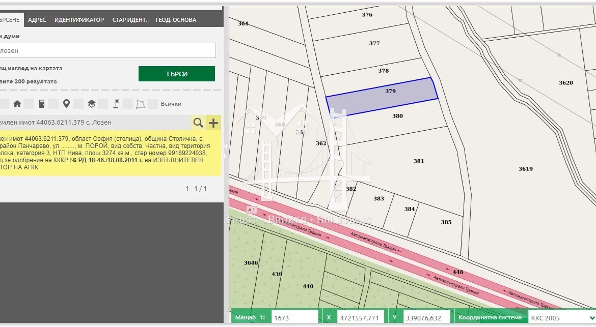 Агенция „Trust Broker Solutions” предлага на Вашето внимание земеделски имот в землището на с. Лозен, м. Порой, в близост до АМ Тракия.