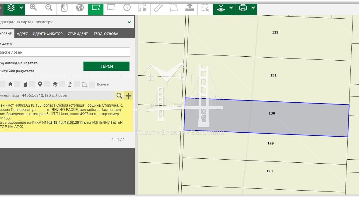 Агенция „Trust Broker Solutions” предлага на Вашето внимание земеделски имот в землището на с. Лозен, м. Янино Раске.